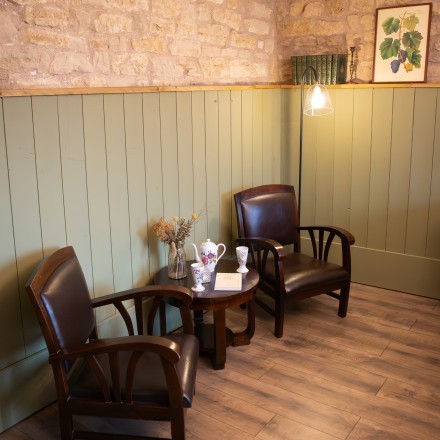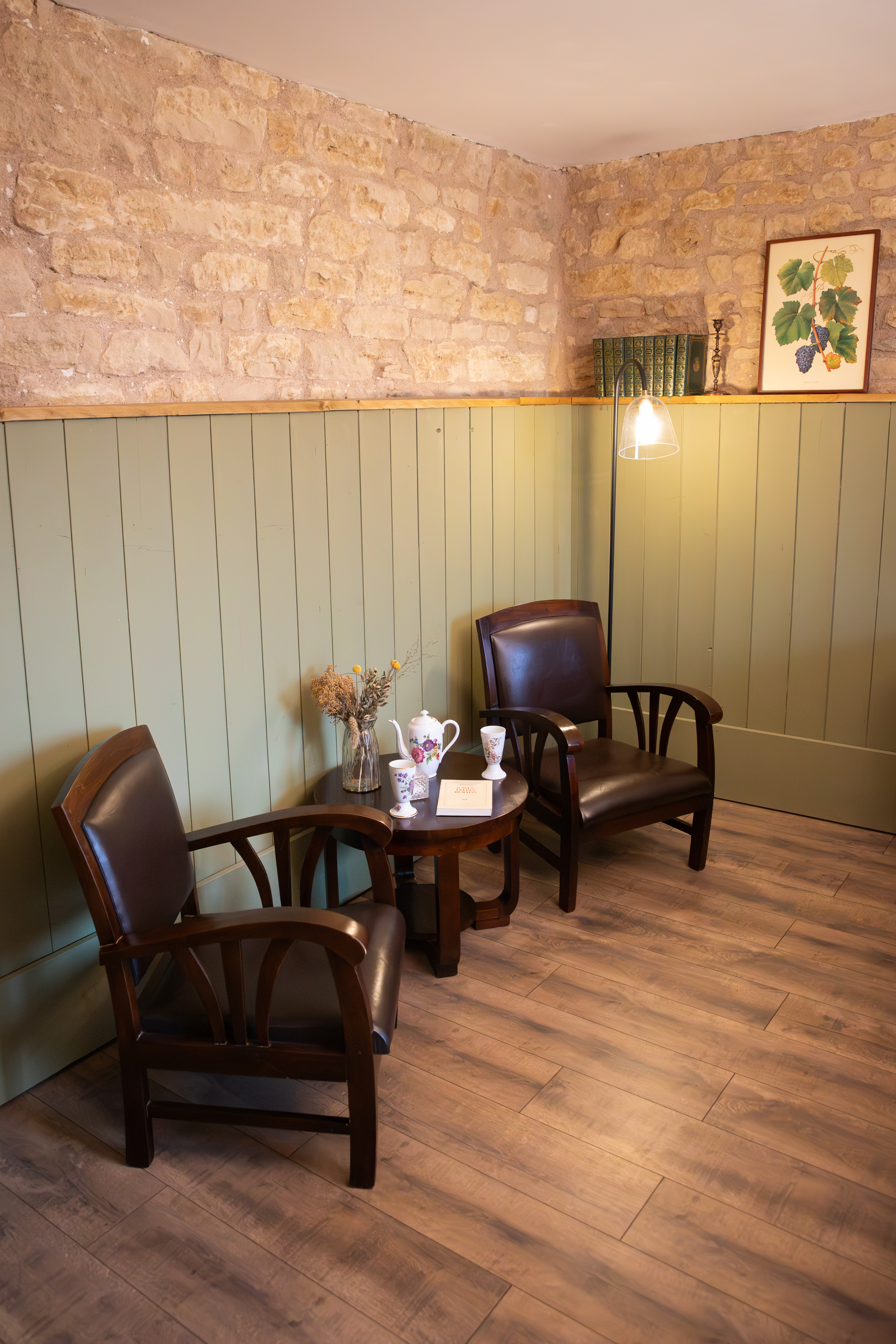 Les espaces communs de La Comtoiserie sont propices à la détente et à la convivialité. C’est ainsi qu’à côté des chambres a été aménagée une tisanerie et une grande bibliothèque. Les objets, les tables, les chaises, les papiers peints et les boiseries donnent à cette pièce un petit côté café des années 30. Les hôtes sont invités à y venir quand ils le souhaitent pour prendre un thé ou un café, tout en faisant la causette. Le hall d'entrée au rez-de-chaussée dispose, quant à lui, d'un espace détente et d'un coin destiné à la vente de produits artisanaux fabriqués localement.